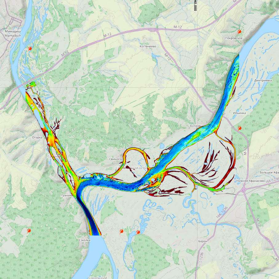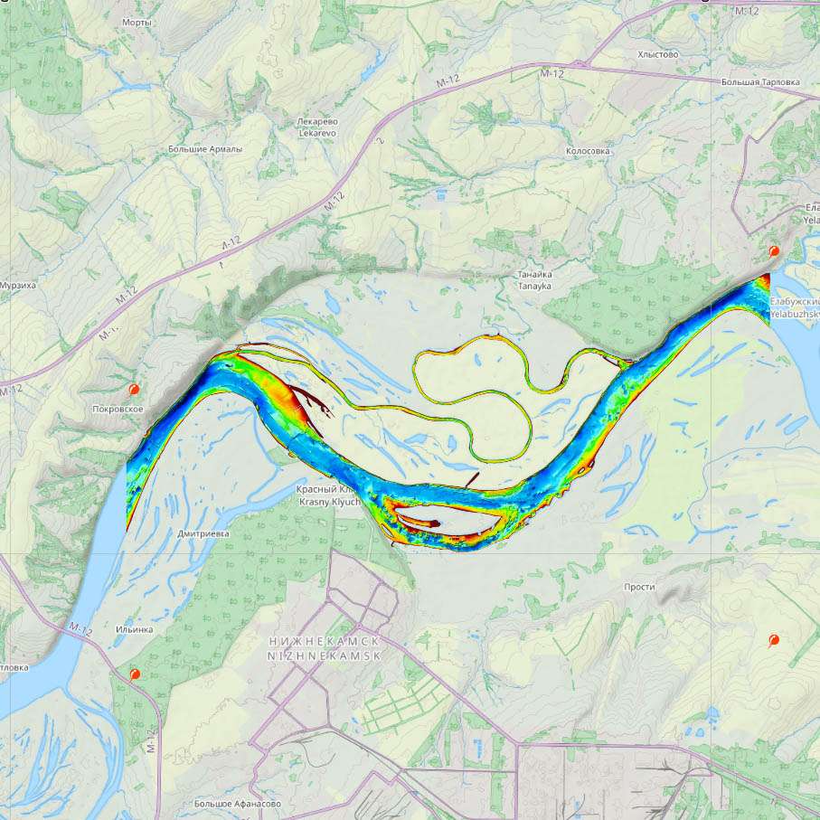 Карта глубин реки Кама в Татарстане