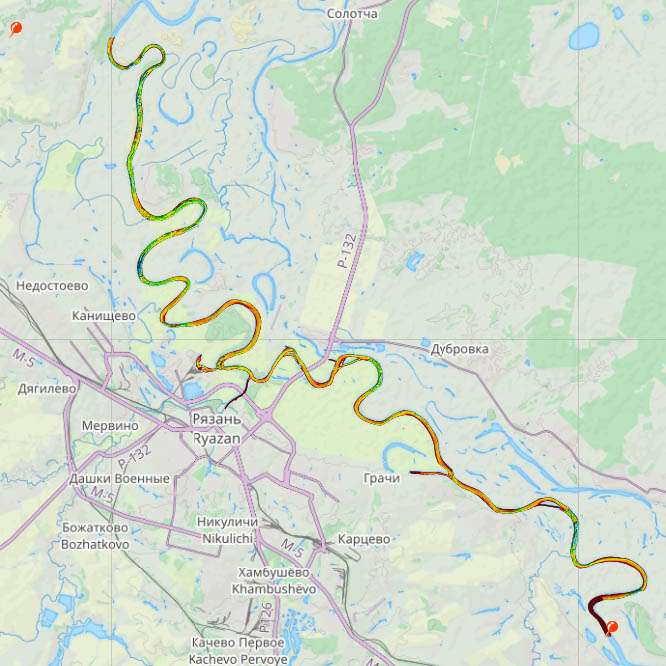 Карта глубин реки Ока в Рязанской области разбита на пять участков в приложении. Один из них доступен для скачивания бесплатно.