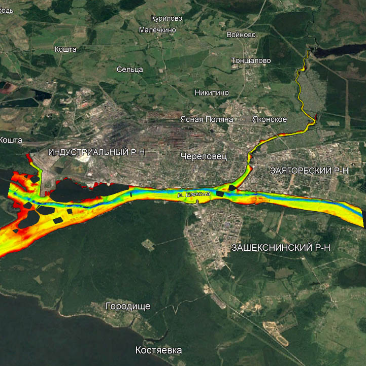 Приложение содержит участки карты глубин реки Шексна от населенного пункта Шексна до впадения в Рыбинское вдхр.